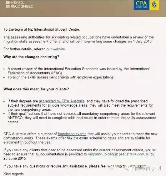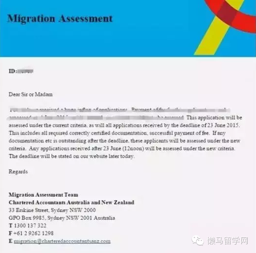 来自两大职业评估机构CA、CPA的邮件表明:这两大评估机构接受旧政策评估申请的时间都有所提前,分别在6月23和6月25日截止。