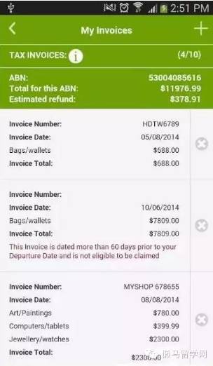 2. 物品价格大于或等于$300 澳币; 或者所有物品在同一个收据中(并且在同一个ABN下)加起来总和价值大于$300澳币;