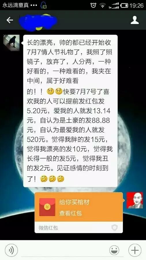 你是不是也在微信里面遇到过红包婊?不给吧,心里过意不去,给了吧,人家得寸进尺,天天能换180种花样老讨红包!