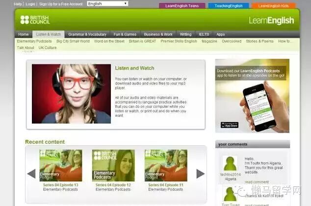https://mmbiz.qlogo.cn/mmbiz/ZatlhsRaiaNCQqMPIteuBp6o4icFpsibiavyx3vepQfF1Jy7s3uyeS03ewampustGWl9Q2yDMetmDmwxwf3IBqW2NQ/0?wx_fmt=jpeg British Council也提供了很多英语学习相关资源。你也可以自己选择想要听的种类,而网站上的内容也很生活化,EX:英国文化、谈论家人等等,最棒的是,每一个音档下面都附赠了练习题!!!!让你听完后还可以测测自己到底有没有听懂。