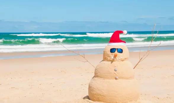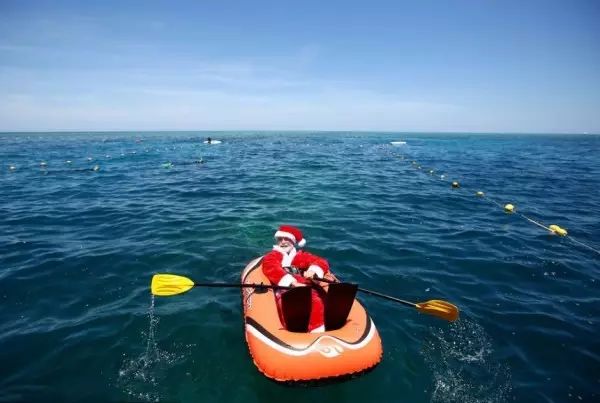 圣诞节在人们眼中仿佛永远都是银装素裹,厚厚的雪衬得红色格外亮眼。而在澳洲,那儿的人们却过着和传统圣诞截然不同的风格。每年十二月二十五日,澳洲在夏季的炎炎烈日下,度过他们“独有”的圣诞节。尽管没有雪,澳洲的人们依旧尽力秉持着传统,用沙作雪,袋鼠作驯鹿,过着不同又相同的节日。
