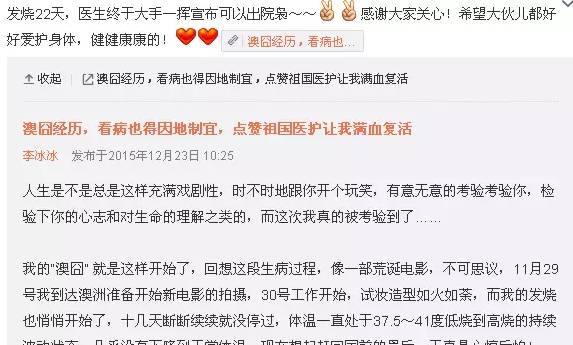 这几天懒马的微博和朋友圈都被李冰冰的消息刷屏了,李冰冰在澳大利亚连续高烧16天,人已经虚脱到无法行走,澳大利亚医生却表示无法确诊。回国一看,原来是扁桃体发炎!