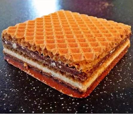 澳洲2015年甜饼干系列的年度产品德国生产,澳洲Aldi超市有售!吃货们吃上绝对不肯放下来的华夫饼干,有5层:费列罗巧克力+鲜牛奶层+威化饼+榛仁巧克力酱+威化饼,一条8包。