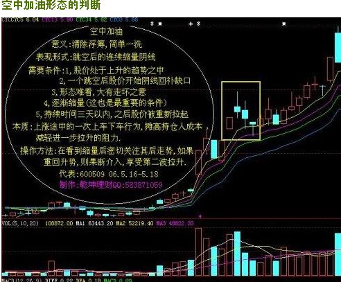 5、判断出该股在走“空中加油”的走势时,我们应在该股量能急缩、下档均线上靠、时间点到达等情况下进场,也可以在变盘临界点等其放量向上突破时再介入。