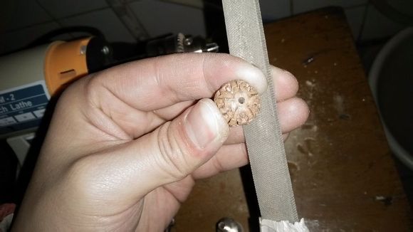 取下来之后我们会发现两端有些小小的凸起,用锉磨一下就好。这一步手感很重要,朋友们如果多次尝试都失败的话,可以直接像磨藏式一样把两头磨平。做成苹果圆鼓珠。