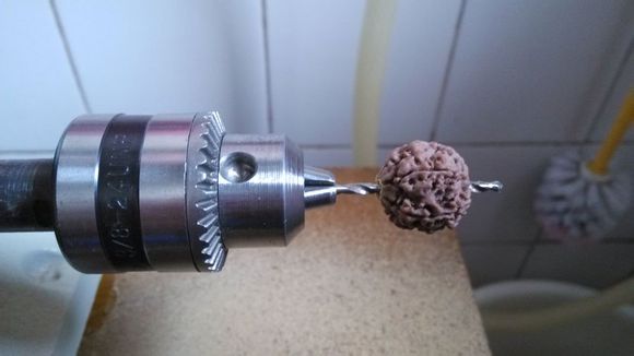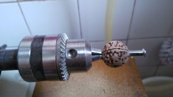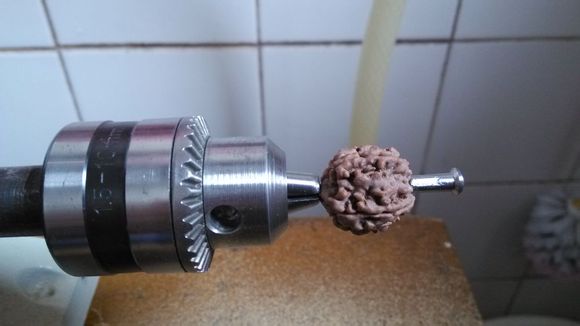 扩孔之后,需要将菩提子牢牢的固定在台磨上,这时候我们就有了第一把神器——自行车辐条!