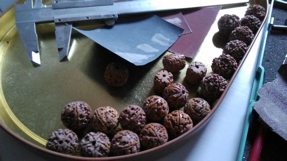 先是选籽,假如咱们想打磨出18mm的珠子,选籽的时候就得选20mm左右的,其他尺寸以此类推。