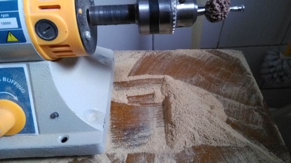 选好了籽,就要把它架起来了——扩孔。搭配组合:台磨机+2.5mm的钻头,在五金店或者建材市场就可以搞定。