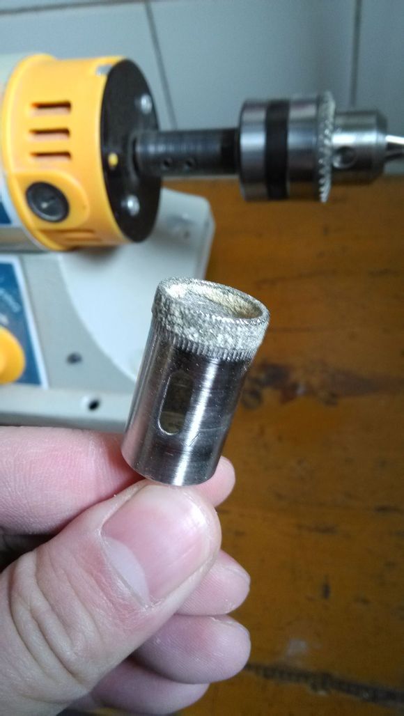 确认固定到位之后,就要准备打磨了,这里我们要请出第二把神器:玻璃开孔器!五金店有售,咱们这次磨的是18mm的珠子,就用18mm的开孔器就好了。