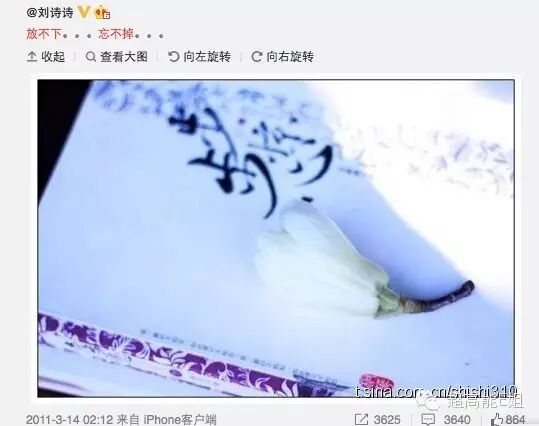 早在《步步》快要杀青时,刘诗诗第一次在微博写下“放不下,忘不掉”,配图也是一朵木兰花。
