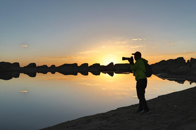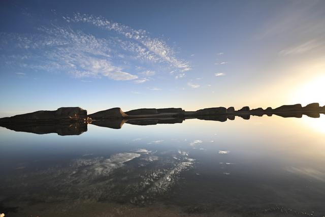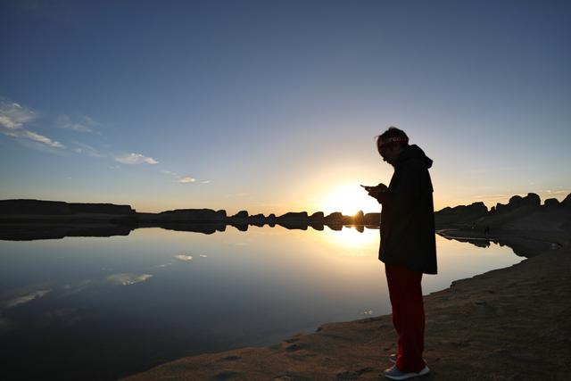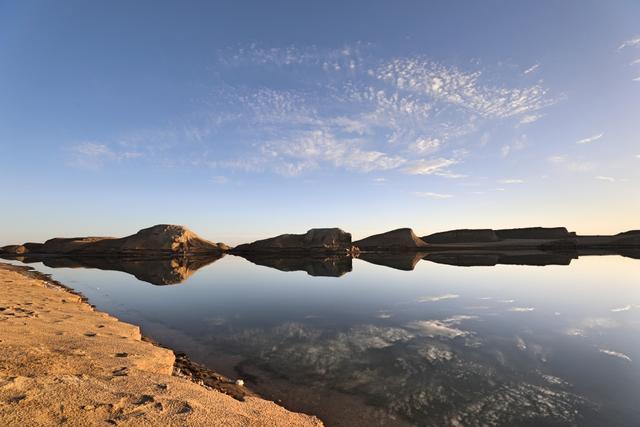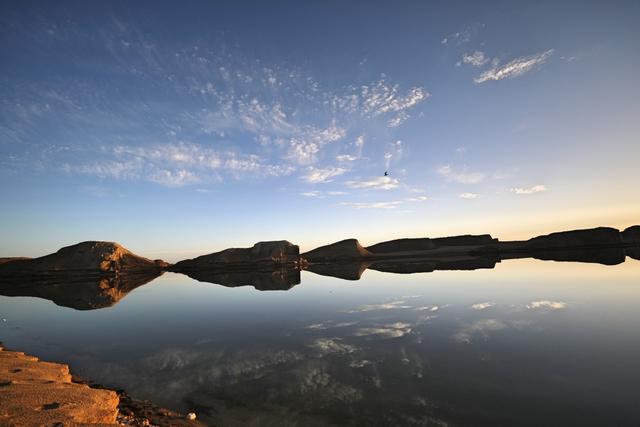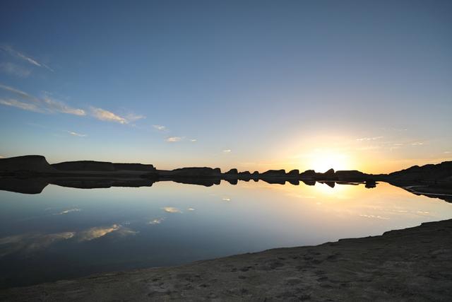 为了感受水上雅丹一天的变化, 我们从早上开始,一直持续到夜里,而惟独在夕阳下的水上雅丹令人心动不已。