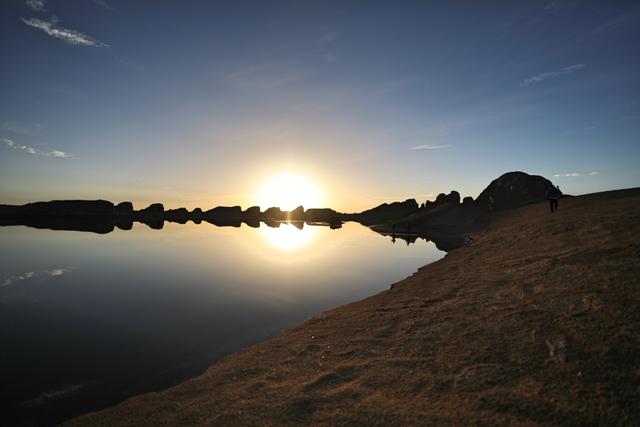 夕阳颜色越深,水雅丹上颜色更加金黄,石柱和倒影感觉升到了半空中,像悬浮在空中的魔幻城堡,而我们就是城堡中生活的人。