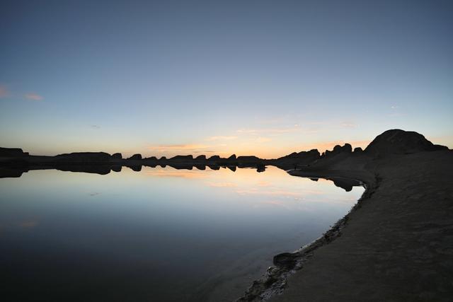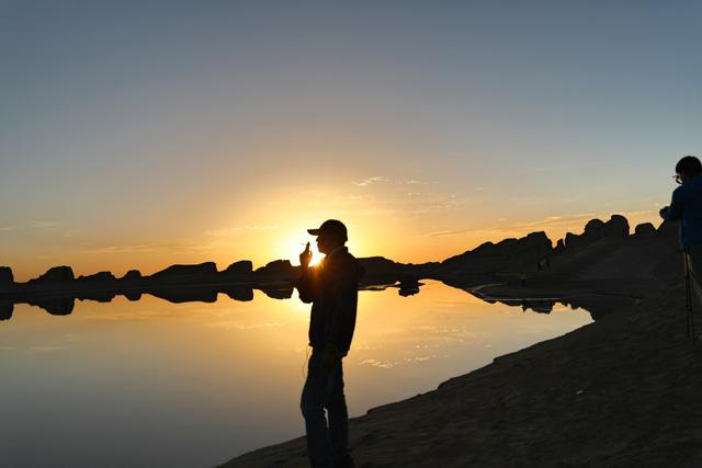 而我们决定在这里野外露营时,充满了期待,新鲜而又很忐忑。但是正当夕阳渐渐落下,留下一道晚霞在水与雅丹之间徘徊,我们再一次被震惊到了。