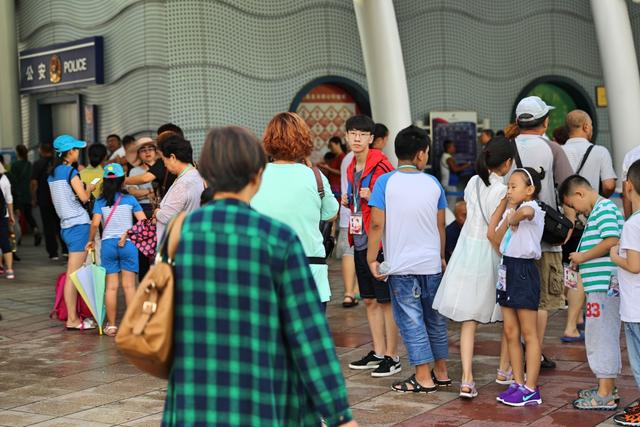 排队的大部分人中,都是家庭出游,或者全家,或者父母带着孩子,当然也有不少团队已经在门口开始排队等候。