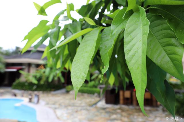 早晨,一阵雨后,泳池四周的叶子上都是水滴,看着雨后的干净透彻,你几乎难以想象,干净到如此程度,在这个时代似乎有太多地方难以找寻,也许惟独只有在这样纯粹的环境中,才会有这样干净的收获。
