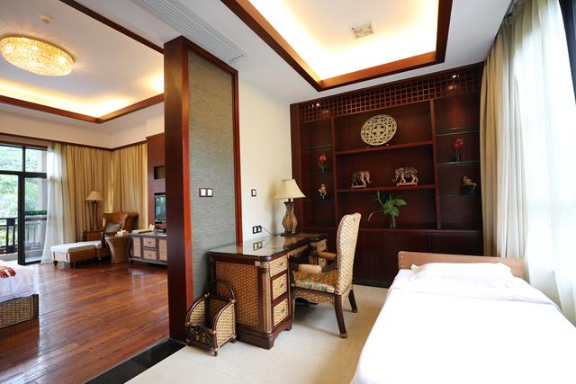 主卧充分的体现了中式传统的风格,在雨林之中,中式传统风格与本身自然的环境相结合,非常适宜,而且容易使人接受,何况对于中国人的入住习惯来说,不管是在热带雨林,还是森林之中,崇尚自然与人的和谐相处是一种传统思想。