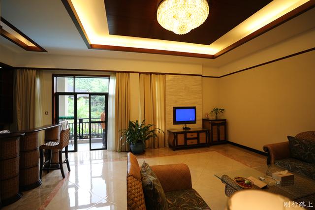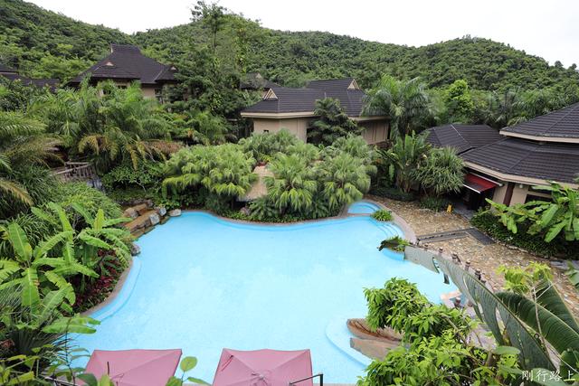 在呀诺达雨林一号度假酒店里,我选择了二层的套房,这是一个一房一厅,但是能够加床,面积足有近150平米的空间,这是站在阳台上看到的酒店外景。