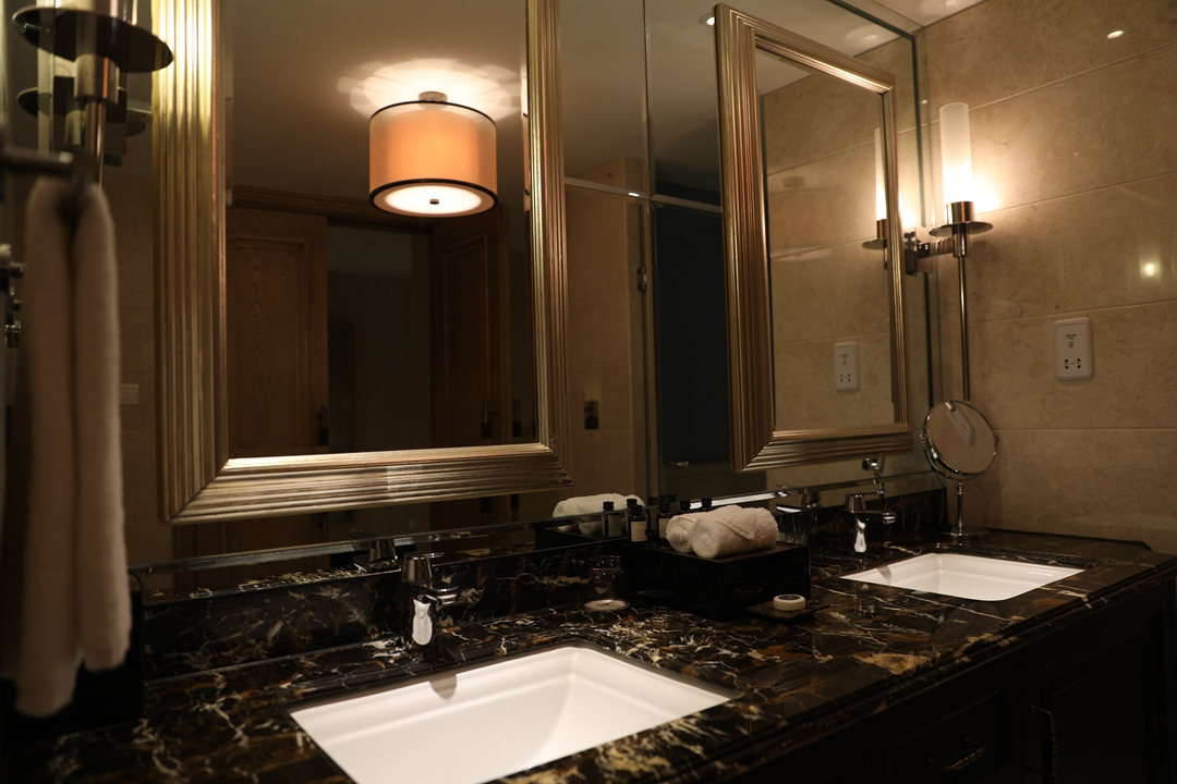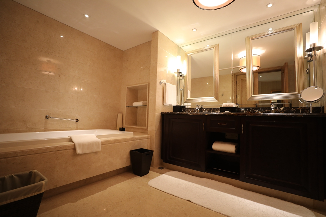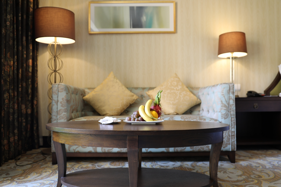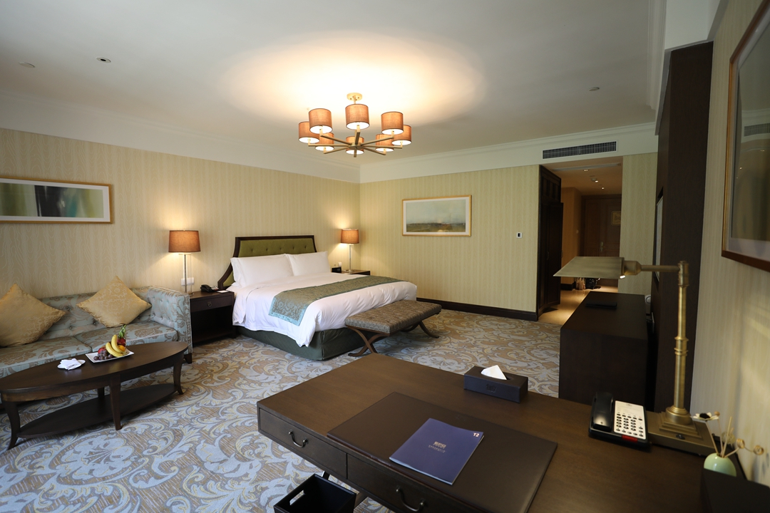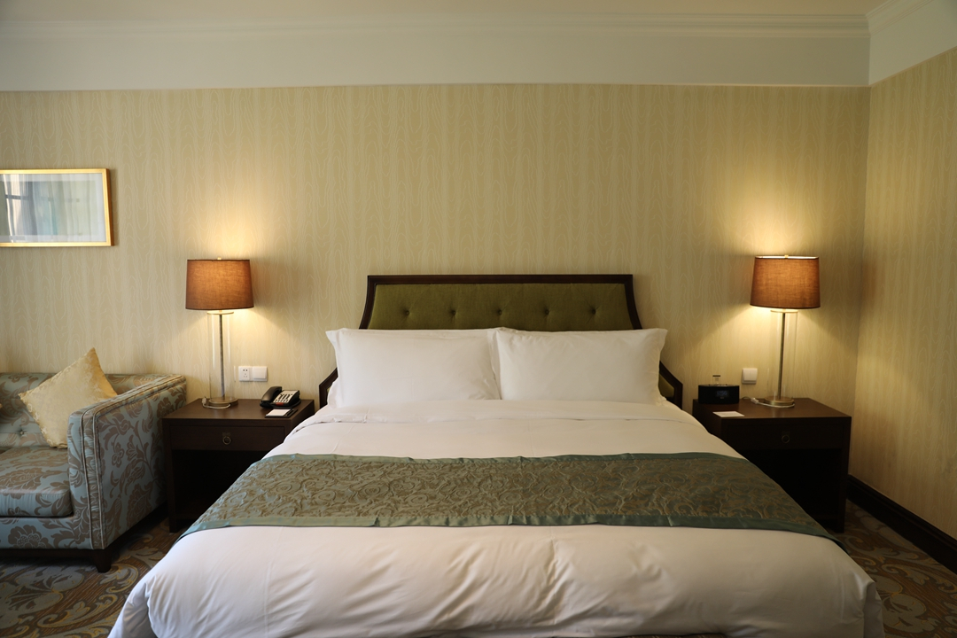 房间的面积宽敞,书桌,茶几,地毯都用同一种色调,感觉清爽宜人,房间里无限供应的软饮,当天赠送的水果,感觉福利倍增。而洗手间温馨的细节提示,干净,整洁的环境和布草,特制的洗浴用品,对于很多不大习惯于在外使用酒店用品的人来说,也是值得尝试的。
