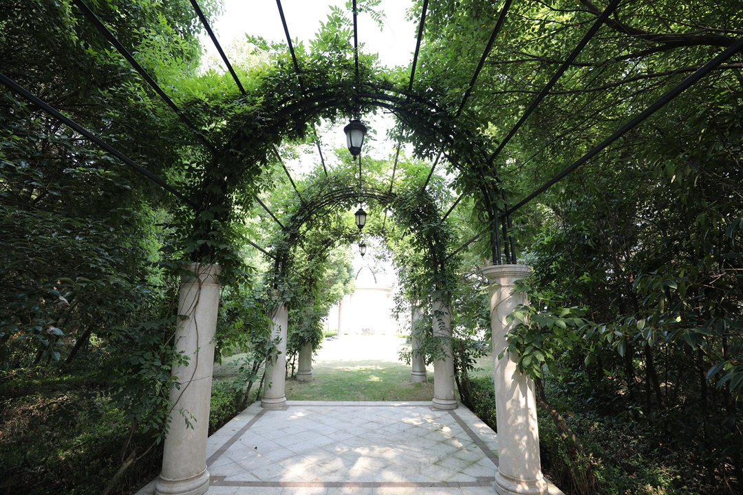 走到后山,台阶之上,林荫之中,绿叶成荫、虫鸣鸟语,在这里发现布置完美的婚礼造型,不但可以举行盛大的户外婚礼,即使漫步期间,也能感受茶香与绿荫相伴的美好,抬头远望,宋城就在不远的地方。