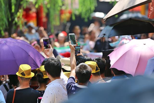 不一会儿,这些穿越快闪秀的古装演员们在街道上载歌载舞,很多人迅速围上来,便把我们挤在了一边。听着快节奏的音乐,闺女一边吃糖,一边看的不亦乐乎。