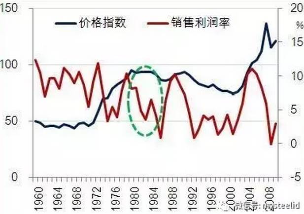 (3)1980年之后日本钢厂销售利润率再次开始回落,在之后5年的时间里连续下降。