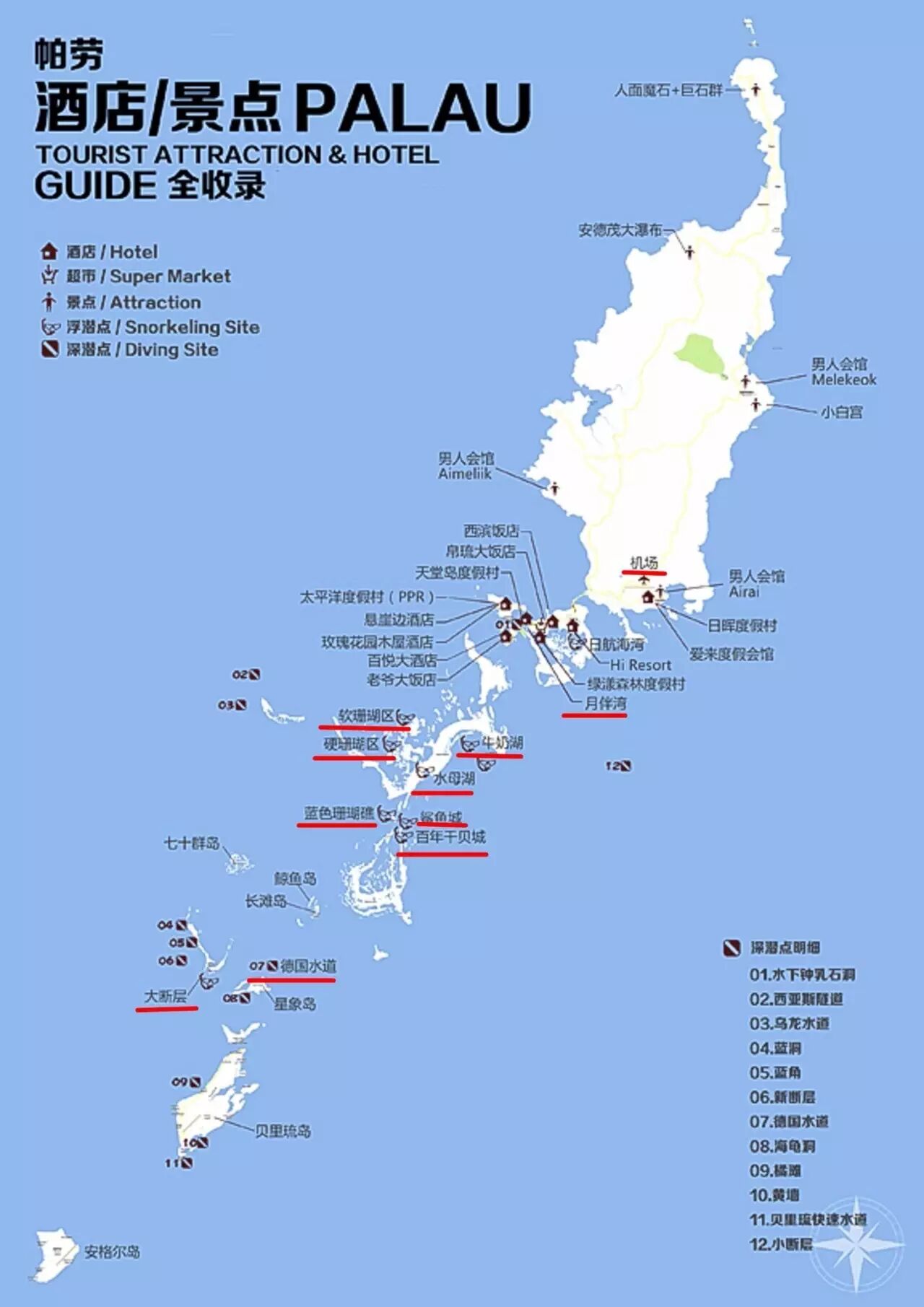 出海:一般都是三天的出海浮潜钓鱼行程。各家的导游会根据天气的情况,把牛奶湖,水母湖,大断层,鲨鱼城,干贝城,玫瑰珊瑚,软珊瑚,日军沉船,美人鱼水道,德国水道,长沙滩等等景点一一打卡签到。每天都会提供丰盛的午饭还有哈根达斯,出海税和钓鱼税是70美金。