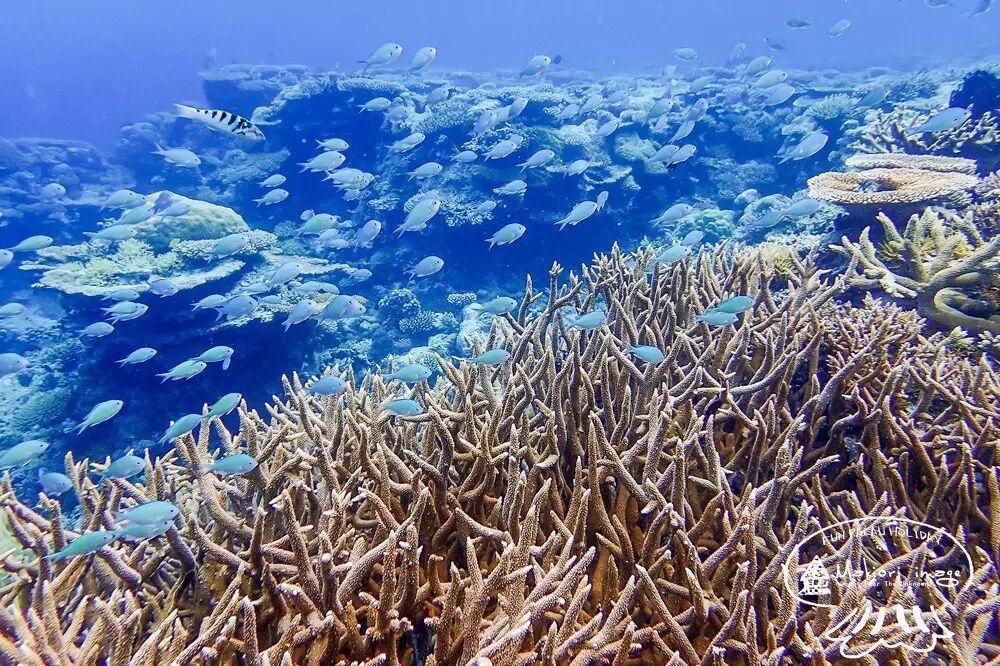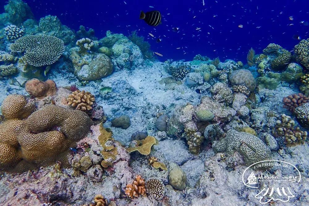 近岛屿的一侧是水深仅仅1-2公尺的珊瑚浅礁,退潮的时候几乎都会露出水面,而另一层则是一条超级壮观的水中大悬崖,深不见底.