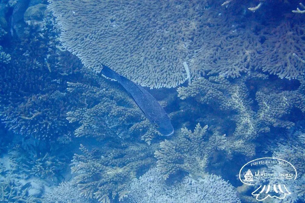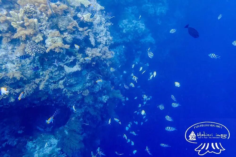 帕劳的1500多种的鱼类、800多种的软硬珊瑚在这里就能看到绝大部分,尤其是介于断层深浅的交界处,珊瑚的覆盖率几乎达到100%