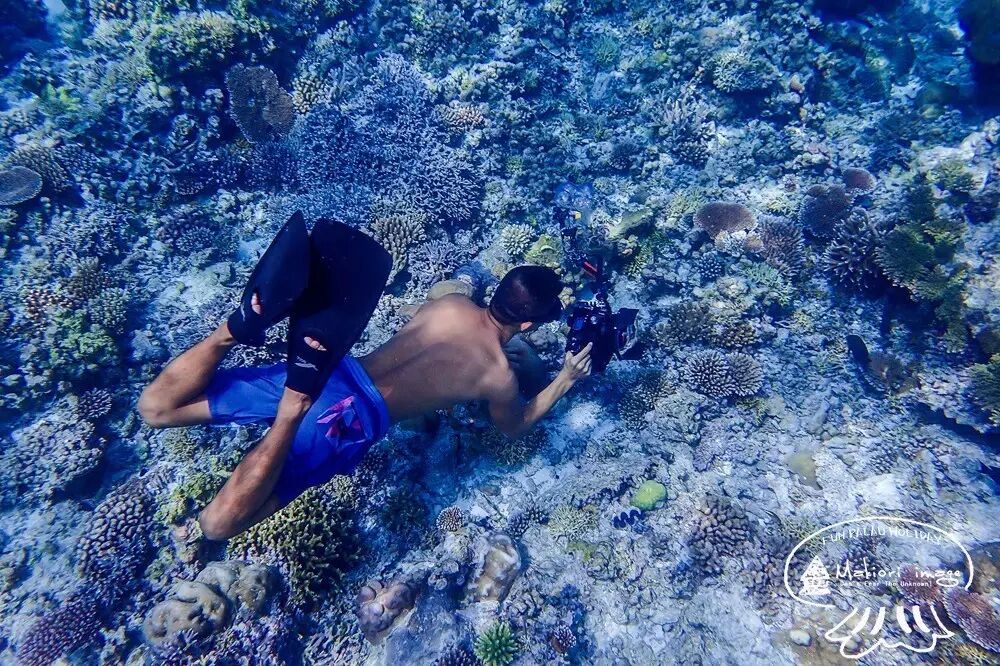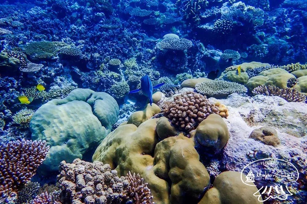 由于早期这里也是一处珊瑚保护区,所以水下的生态丰富,琳琅满目的珊瑚在这个水域里茂密的生长。除了可爱的热带鱼穿梭其中之外,还有许多罕见的生物。例如这个巨型玫瑰珊瑚,真的太好看了,在神秘的水底闪烁着幽幽的蓝光,如果运气够好还可以看到正在觅食的美人鱼。