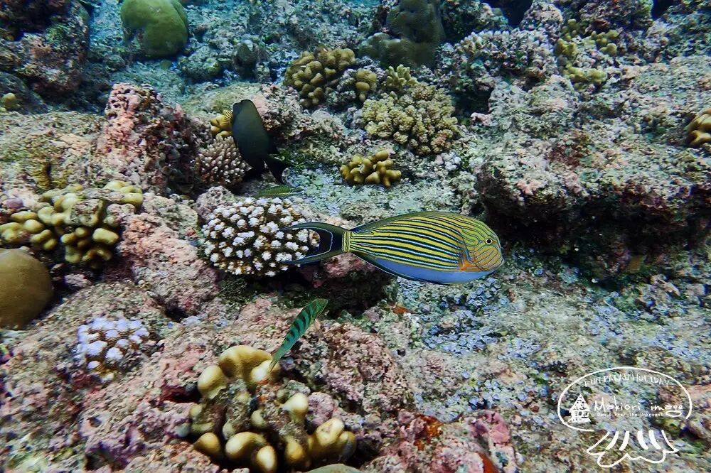 且到处都能看见各式各样色彩鲜艳的热带鱼,有雀鲷,蝶鱼,管口鱼等等,当然这里也是小丑鱼尼莫的家。