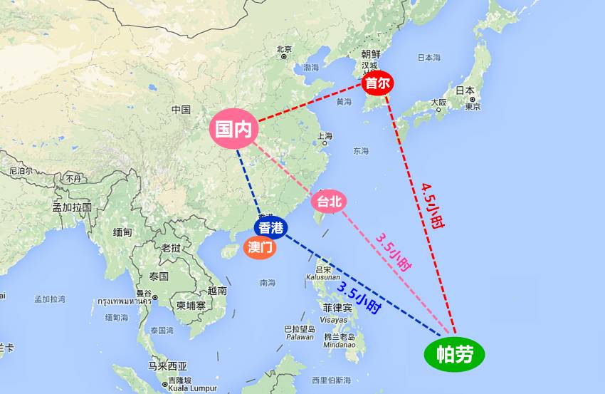 飞机:因为没有建交,从国内飞帕劳没有直航,但有四个转机地点可以选择,首尔、台北、香港和澳门。我个人建议童鞋们可以考虑在香港和澳门中转,顺便去买买买,同时也是因为现在国内的旅行社推出的帕劳“机票 酒店 出海”自由套餐大都是选择香港或者澳门中转。