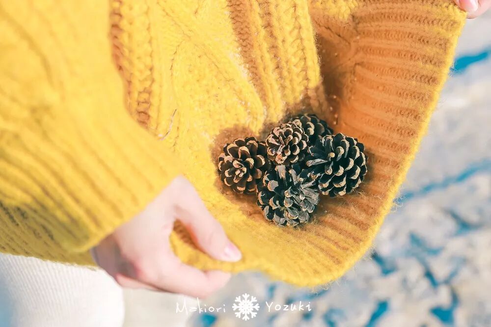 岛上基本一半是原始森林,一半是草原,还有一小部分是沙漠。基本没有修好的路,路都是车轮碾压出来的。往原始森林的方向,路边一颗大松树引起了小伙伴的注意,沿着大路踩下去的积雪足足有膝盖这么高,吃力的走过去,立马发现了一片天地,遍地都是掉落的松果。