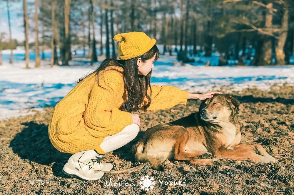 阳光透过树梢洒在了小伙伴身上,温暖而又舒适。背后的树木苍劲挺拔,即使是寒冬也还有不少的叶子。整个小树林只有我们两人,四周一片寂静,只有时不时树枝被雪压弯掉落地面的声音。但是,这个场景我却非常的喜欢,突然有一种整个森林都被包场的小幸福。