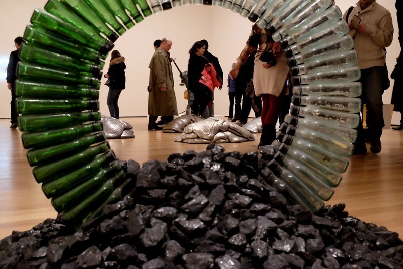 晚上6点到达MOMA,被人流吓了一跳,中庭坐满了人,跟收容所似的,寄存我的背包后才能入内参观,寄存就排队15分钟