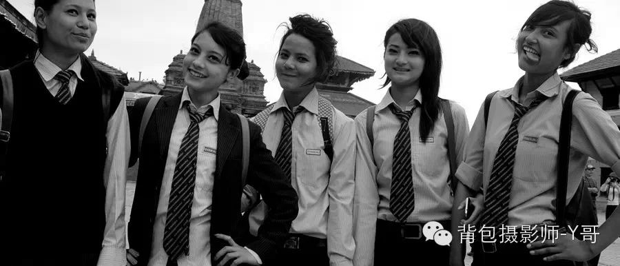 穿着校服尼泊尔的女学生们,不羁的表情看到青春期的反叛