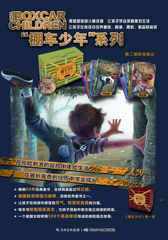 The Boxcar Children Mysteries,亨利、杰西、维莉、班尼四兄妹从小就是孤儿,他们知道自己有一个爷爷在绿野镇,但是他们不喜欢他。为了躲避爷爷,孩子们在一个破旧的棚车里安了家,开始相依为命的生活。他们积极向上,阳光开朗,不惧生活的挫折。不仅如此,他们还相互帮助,一起寻找生活的乐趣,在树林里安家、收留小狗望望、探宝、自由赛……最后爷爷找到了他们,原来爷爷很年轻、慈祥、很爱他们。最后他们跟爷爷一起回家,过上幸福快乐的日子。