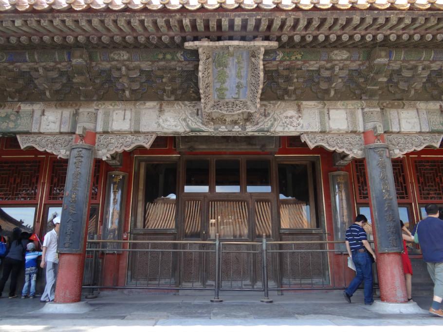体和殿也是五间的结构,和储秀宫是门当户对。它中间一间是穿堂门,留作朝见的人和伺候的人往来出入的;东两间连在一起,有两个桌子摆在中间,这是老太后传膳的地方。老太后早点在储秀宫用,中午、晚上两正餐,多在体和殿。通俗来讲,体和殿就等于老太后的外书房和餐厅。