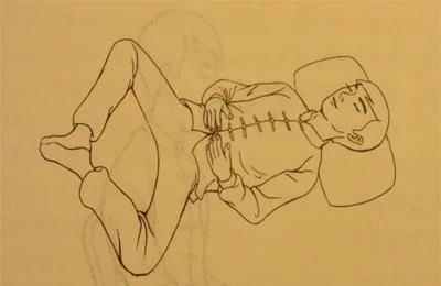 睡觉的姿势如图所示。身体自然平躺,两手心向着腹部。两脚心相对,整个身体为对称状态。如果双脚能顶着会阴穴最好。这个睡姿,手所在的位置为肾区,能收敛聚集阳气。所以还阳卧补肾聚阳的作用非常有效。然后是混元卧