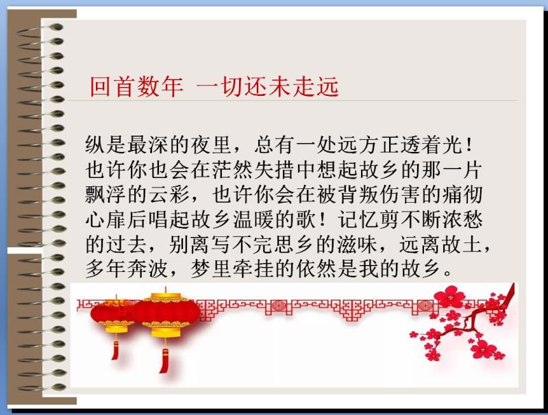师:席慕蓉的《乡愁》和卞之琳的《乡愁》都是很好的表现乡情的文字,大家好好品味一下。(多媒体展示相关文字)希望同学们注意学习这种细腻的文笔,这种情感丰富的语言。这真是:原谅我的不辞而别,却爱你至深!
