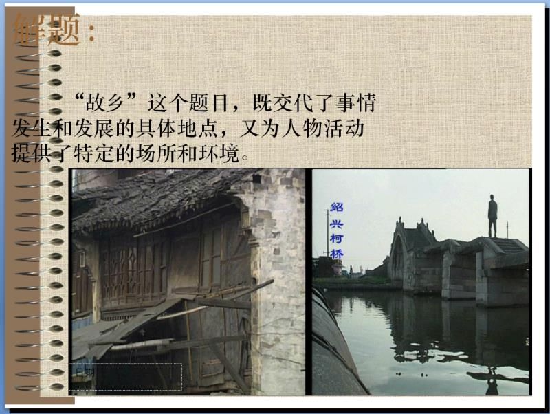 师:由此可见,文中的“我”是小说中的人物,但带有作者自身的影子。小说来源于生活,又高于生活,这也是小说的一个重要的特点。下面我们来解读一下《故乡》这个标题!