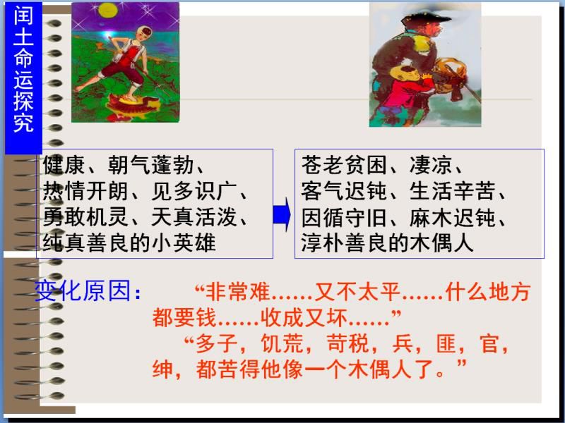 师:同学们,请深入思考,中年闰土变化之大的深层原因是什么?