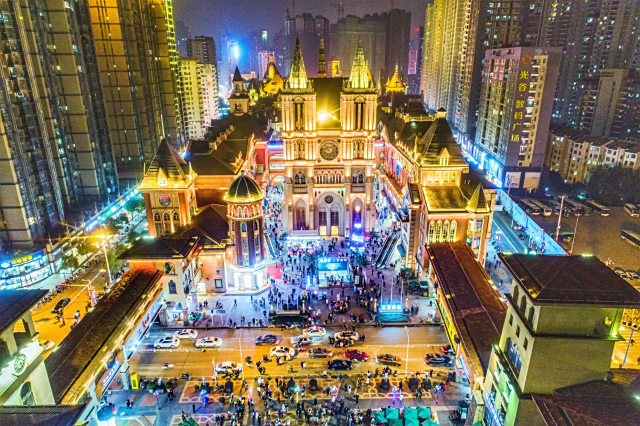 光谷步行街也是个外国风情街,建筑、雕塑、广场、酒吧、教堂、演唱尽显异国风情 。