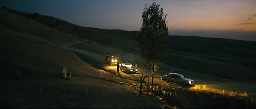 这样的镜头在电影的前半部分,出现了6次,而且单个镜头持续的时间都很长。按道理说,这样的镜头放那么长是没有意思的,因为观众看见了汽车的信息,基本上可以脑补出其他细节,而汽车行驶的路线如何,对于剧情推进是没有任何影响的。