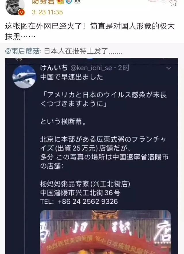 首先:此事是否是商家所为?能开66家分店的品牌粥店,大至还是需要点智商的吧?绝大多数经商的人,不会在这种时候,这么鲜明地提出自己的观点和主张的。这意味着至少会让一半以上的顾客不适。如果算上“庆贺新冠”这种三观太过于逆天的态度,可能受的损失会更大。正常的商人不会不考虑。除非是商家得罪了人,有人想让他下不得台,甚至蒙受损失。或者是关门太久,都秀逗了。