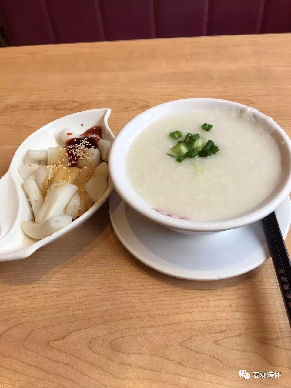 初五早上吃的这家叫靠得住鱼汤靓粥,据说是香港四大才子之一的蔡澜曾经推荐过。我点的皮蛋瘦肉粥套餐,送一份肠粉,味道不错,30港币,皮蛋与瘦肉给的都挺多。外加一杯豆浆,5港币,小咖啡杯。打包了一份碎牛肉粥+咸肉粽,因为瞄见了其全港最正宗鲜肉粽的宣传语。事实证明,这不是我们的口味。