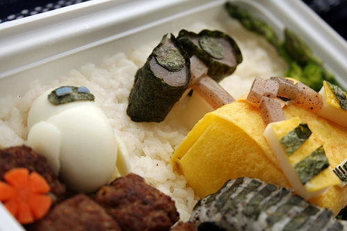 补充一下,从爱活网看来的,想自学制作这样的便当的朋友可以到这里看图自学,不错,国内看可能需要代理: