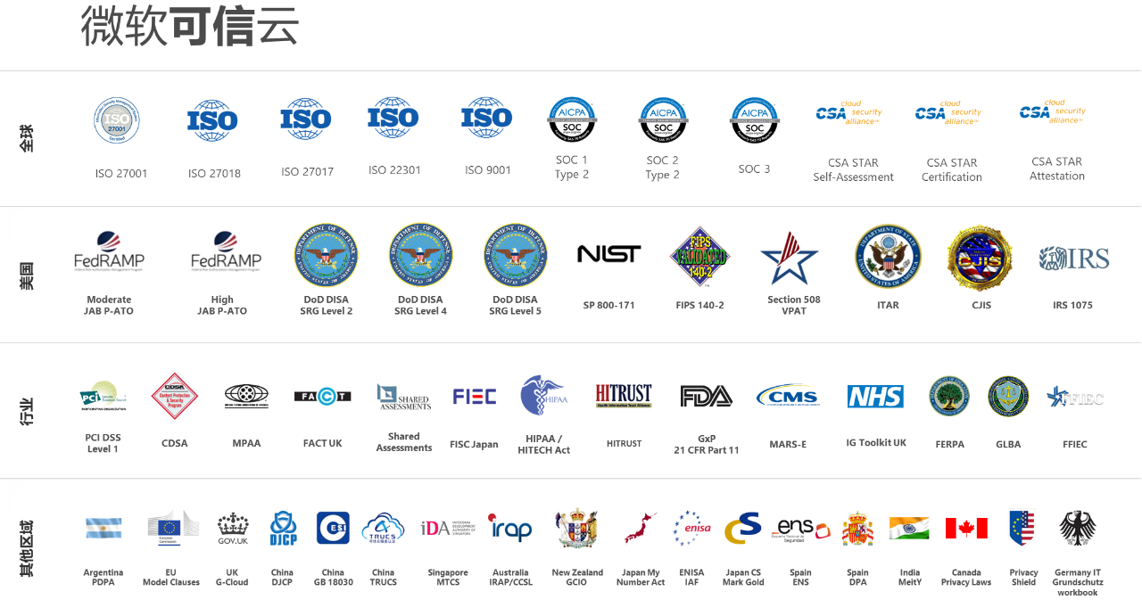 从合规性来看,全球拥有90+针对 50 多个全球区域及国家/地区的符合性认证,提供35+主要行业针对性合规性产品,包括健康、政府、金融、教育、制造和媒体等行业。这种合规性上的帮助,可以为企业节省大量的时间,并降低了法律风险。