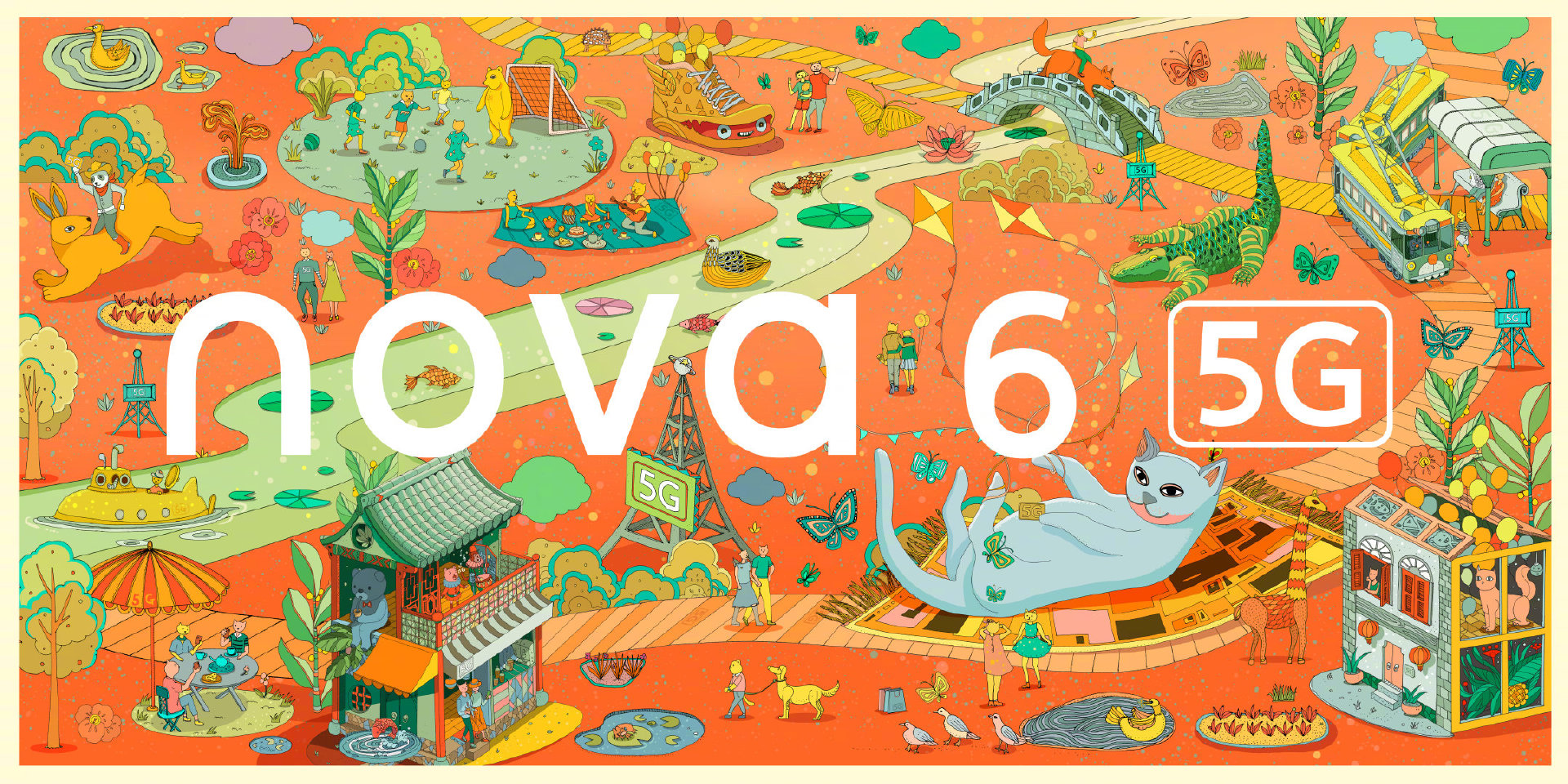 为了更加生动、形象地表现这一点,华为nova6系列联手知名设计师江杉、吴盈夫妇,以年轻人的新“G”元为主题创作了四幅插画。阳光、沙滩、冲浪、滑板、撸串、火锅、摩天轮、冰淇淋......各种代表年轻人生活方式的符号散布在画中,且处处暗藏5G彩蛋。