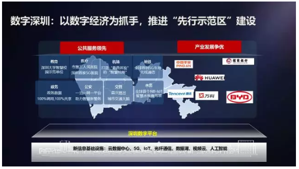 数字经济已经成为深圳的支柱产业之一。先行示范区既要先行,又要示范,因此,深圳在先行先试的基础上,不断将数字经济发展的政策、做法模式化,向其它城市输送成功案例。