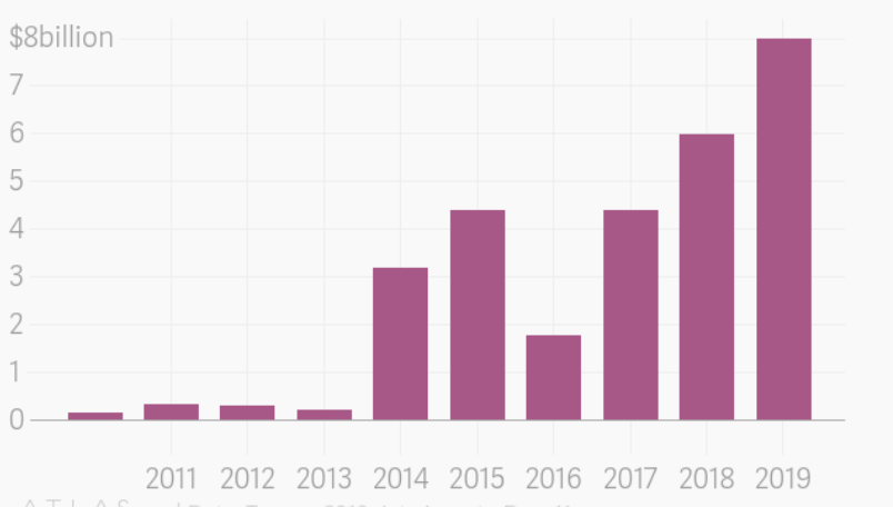 根据一些公开数据的统计,截至2019年12月10日,中国企业在印度的投资(风险投资公司和实业企业)在印度的投资已达到80亿美元,而在十年前,这个数字还不到2亿美元。大概是在2014年开始,中国IT和互联网企业对印度的兴趣开始激增,当时中国企业对印度的投资从2013年的2.14亿美元一下子跃升至32亿美元。